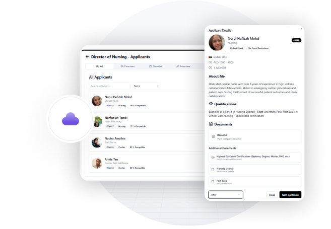 Connect with top healthcare professionals from nurses, doctors to allied health specialists across various specialties. Our platform offers talent with a diverse range of skills and experience to meet your hiring needs.